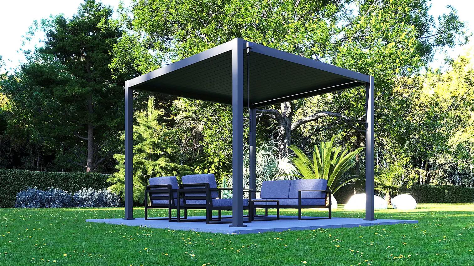 Yağmurlu havalarda suyun akmasına olanak sağlayan mükemmel bir yerleşik drenaj sistemi vardır. Panjurlara düşen yağmur suyu pergola çevresinde bulunan kanallara akar. Yatay çerçeveye girdikten sonra, yağmur suyu, içi boş pergola ayaklarının içine ve dikey olarak yere doğru akacaktır. Bu sistem sayesinde suyun pergoladan aktığını göremezsiniz.